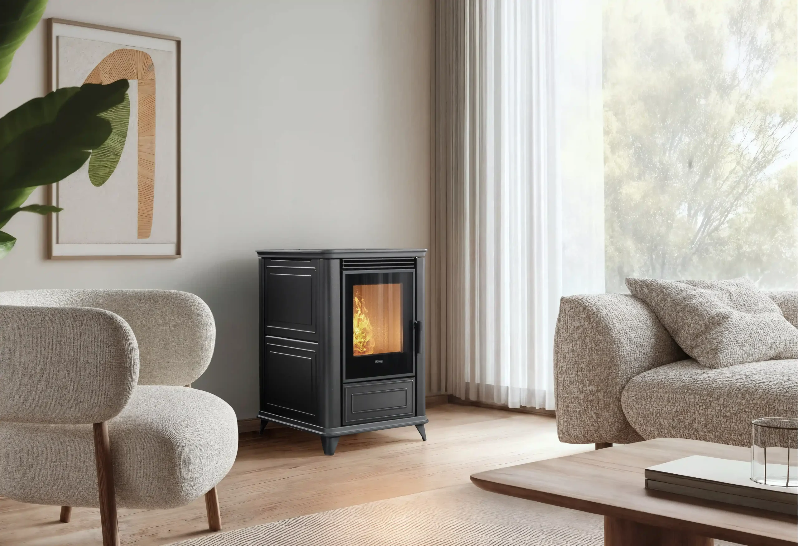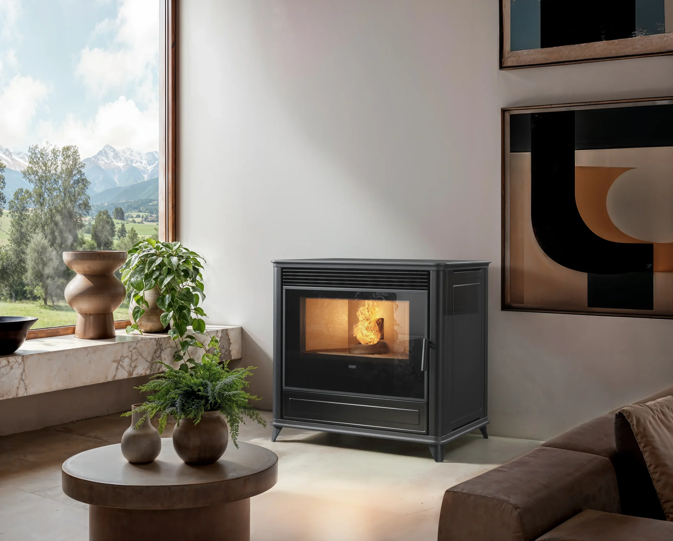 Le Klover Omega est une option intéressante pour ceux qui cherchent un poêle à granulés orienté performance, avec une finition soignée pour une intégration élégante.